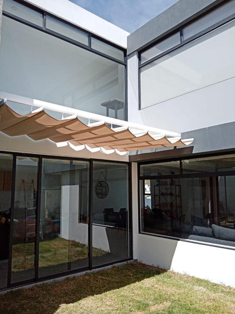Toldos calidad premium que dan elegancia y protegen tus espacios. Ya sean manuales o motorizados,filtran hasta 99% de rayos UV, bajan la sensación térmica.